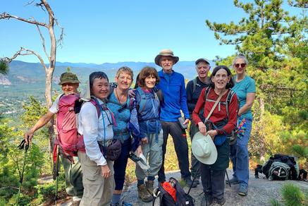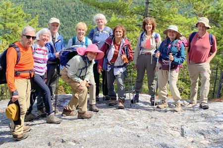 Hiking Week 2025. Each year we head out to a more distant location to explore trails in far-away places. We've been to the Adirondacks, the Catskills and the Berkshires; Shenandoah and Acadia National Parks, Harpers Ferry W.Va. and the Green Mountains of Vermont. This September we traveled to New Hampshire for a week of hiking in the White Mountains. We enjoyed perfect weather, beautiful (and challenging) trails, and great camaraderie. Here are just a few photos from our trip: an above treeline view, folks enjoying the summits, and one of our many post-hike ice cream stops!